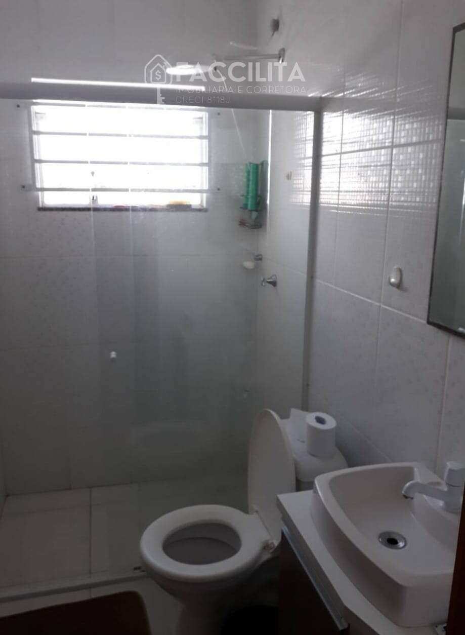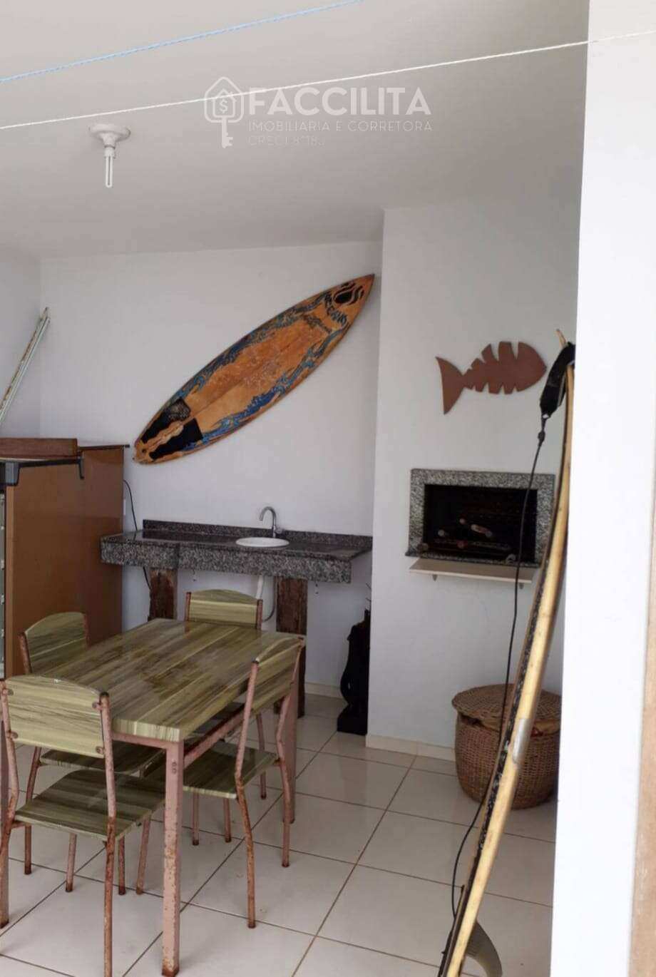 O imóvel tem 3 quartos, sendo 1 suíte, possui 2 banheiros, 1 sala, área de festas com churrasqueira e 2 vagas de garagem.