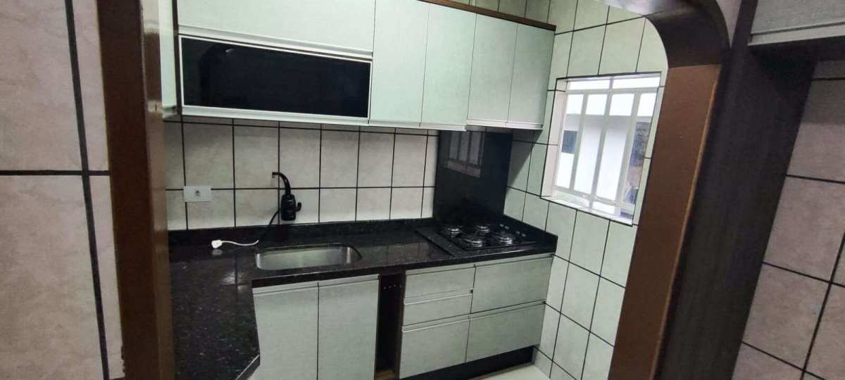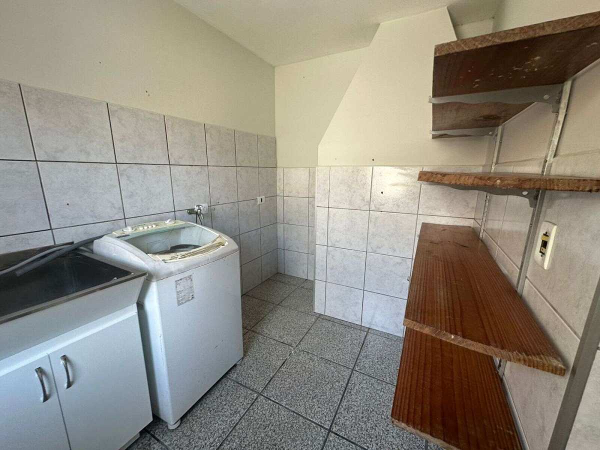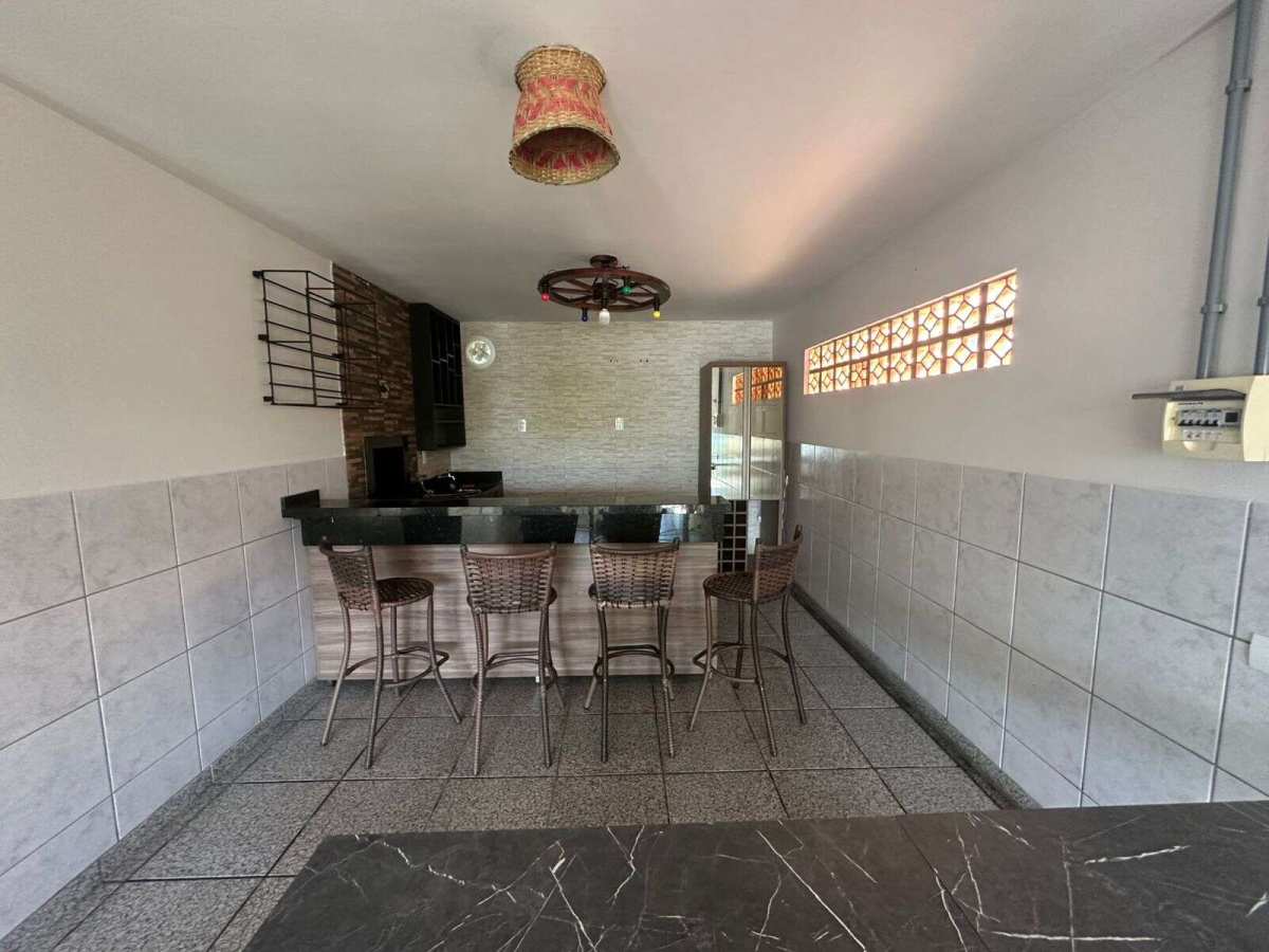 O imóvel tem 3 quartos, possui 2 banheiros, 2 salas, cozinha, lavanderia, área de festas com churrasqueira e 2 vagas de garagem.